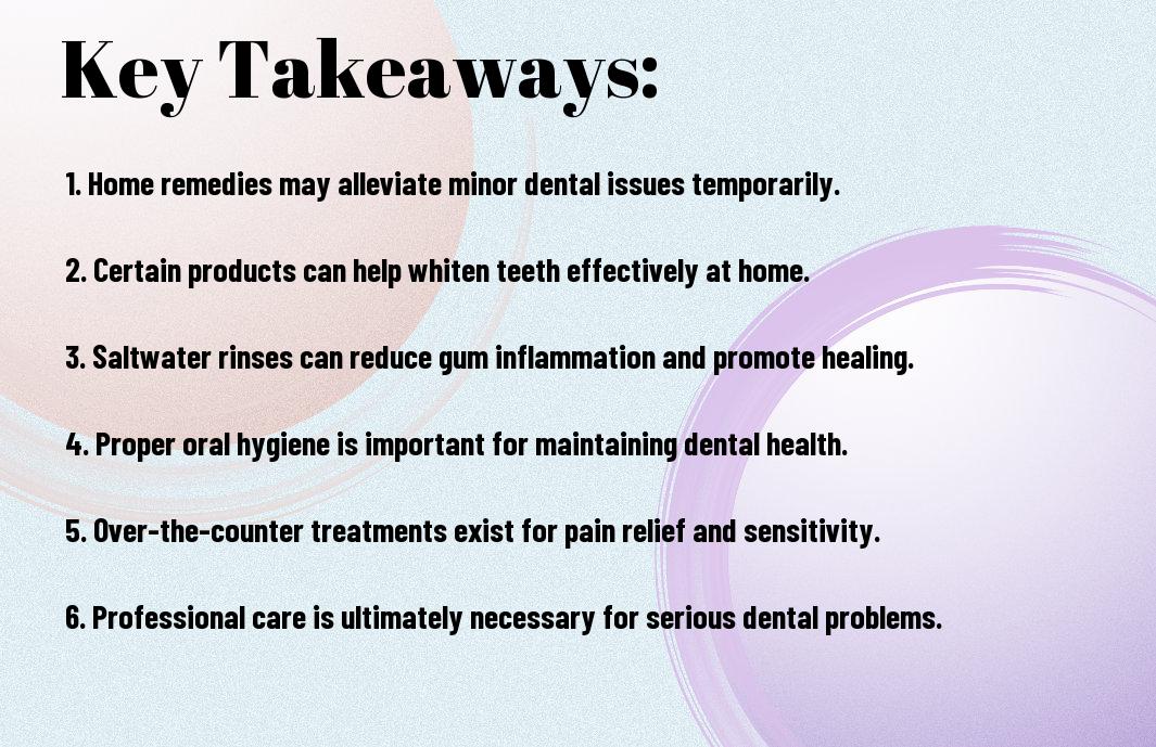 Even though dental visits are important for maintaining oral health, there are home remedies you can try for minor dental issues. These remedies can provide temporary relief and help you manage discomfort until you can see a dentist. By utilizing natural ingredients and methods, you can address some common problems like toothaches, sensitivity, and plaque buildup right from the comfort of your home.