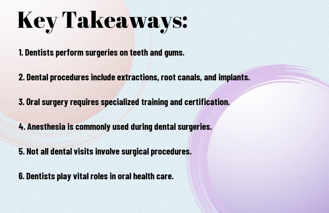 Most people often wonder about the role of dentists and whether they can be classified as a type of surgery. A dentist specializes in oral health, focusing on the prevention, diagnosis, and treatment of dental issues. While dental procedures can involve surgical techniques, such as tooth extractions or gum surgeries, the field of dentistry encompasses much more than just surgery. In this post, you will gain a clearer understanding of the distinction between dental practices and surgical procedures, allowing you to make informed decisions about your oral health care.