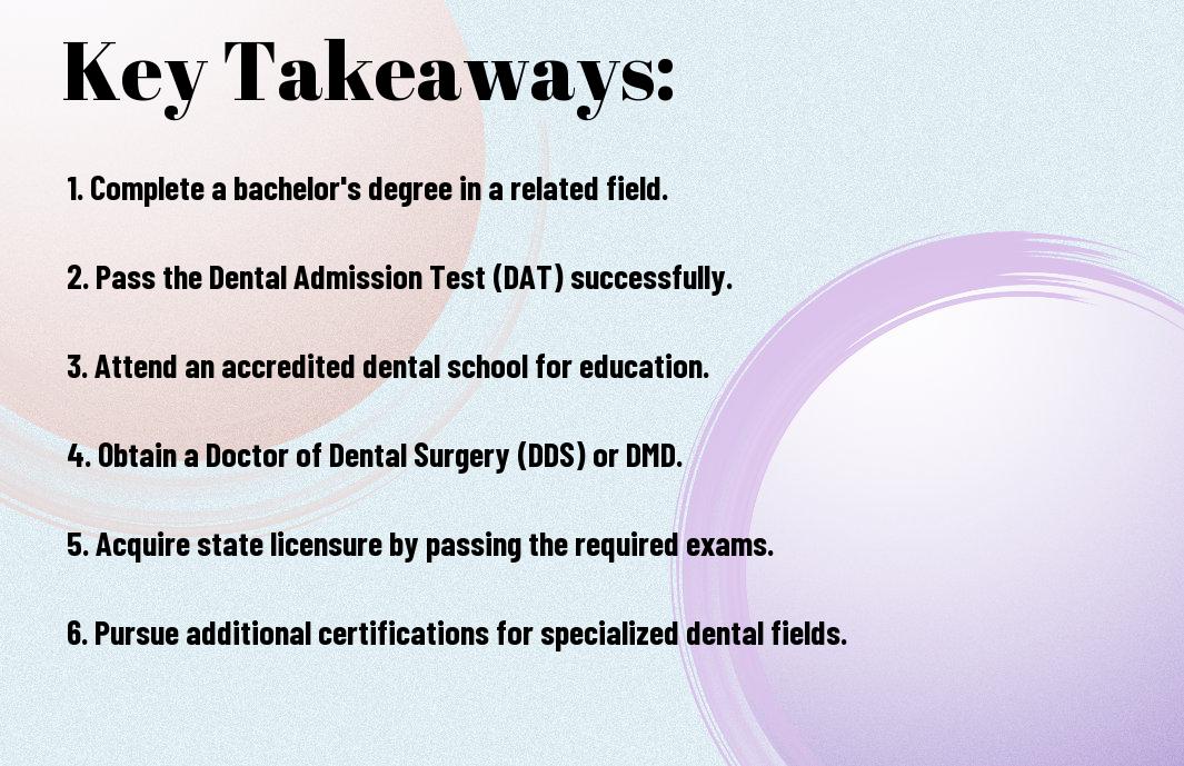 Dentist qualifications are important for ensuring you are equipped to provide the best possible care to your patients. To commence on this rewarding career path, you will need a strong educational foundation, including a bachelor’s degree, followed by a dental degree from an accredited dental school. Additionally, passing state and national licensure exams is mandatory. Throughout the process, gaining clinical experience and developing your skills will be vital in preparing you for the diverse challenges you will face as a dental professional.